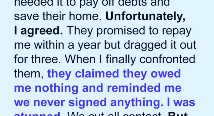 My own sister—someone I grew up protecting—was now pretending a loan was a gift. We cut off contact that day. I walked away shaking, realizing that the relationship I’d treasured was probably gone forever.