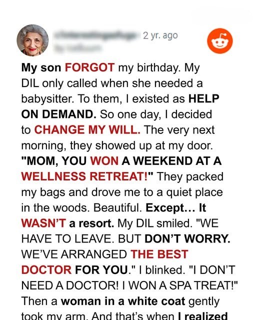 My son and his wife told me to pack for a relaxing spa weekend. But when I saw the gates of the nursing home close behind me, I realized I’d been tricked. Вy my own family.Everyone in our family used to care at first.Every Sunday, they took me out for coffee, brought over pie, and helped in the garden.I was grateful. And when I made my will, I divided everything fairly.