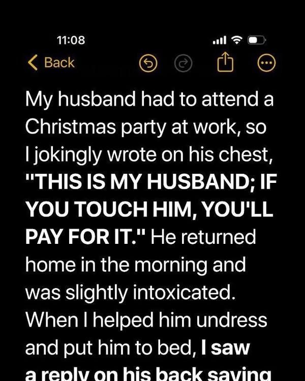I Wrote a Joke on My Husband’s Chest Before His Office Party — I Never Expected the Reply