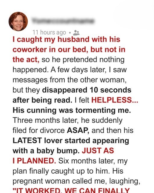 We met and I laid out my plan. I couldn’t catch him in the act, but I was certain of his betrayal. I proposed she pretend to be pregnant.