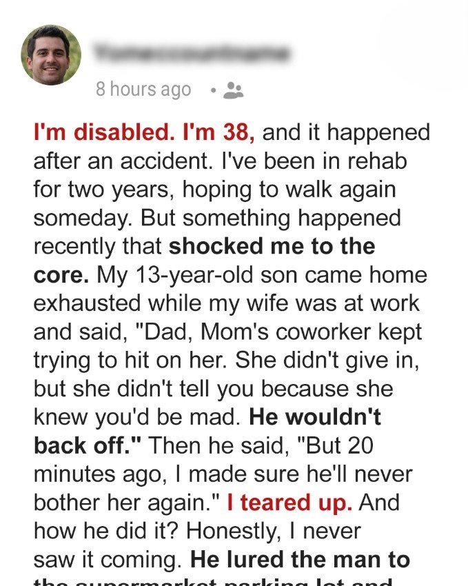 Our 13-year-old son handled my wife’s flirty coworker behind my back, and I was shocked when I found out how.