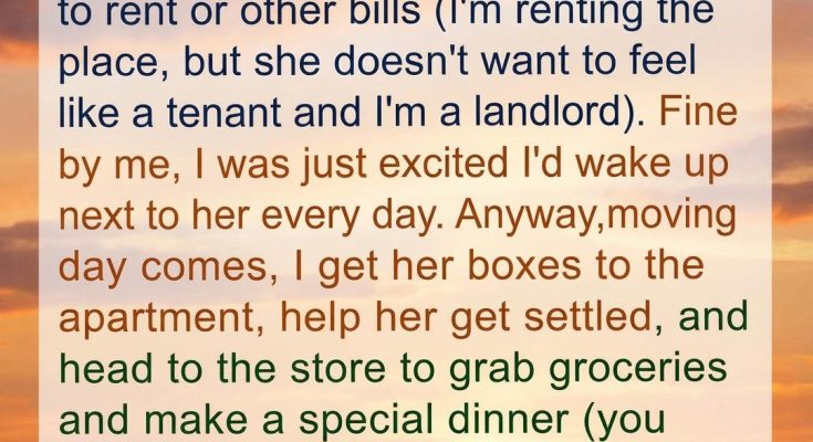 I’ve been dating my girlfriend for just over a year. I asked her to move in, and we agreed on her not contributing to rent or other bills (I’m renting the place, but she didn’t want to feel like a tenant and I didn’t want to feel like a landlord). Fine by me—I was simply excited to wake up next to her every day.