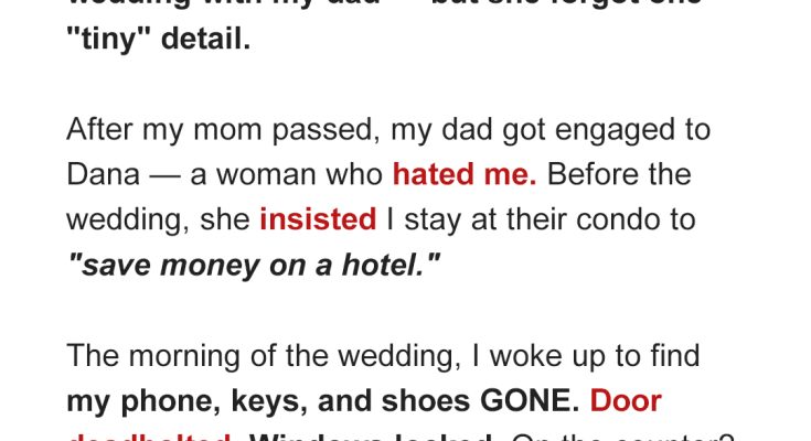 A few weeks later, Dad moved out of the condo. He filed for an annulment before Dana could even unpack her dress. One night over dinner, he looked at me and said, “I saw her for who she really was because of you.”