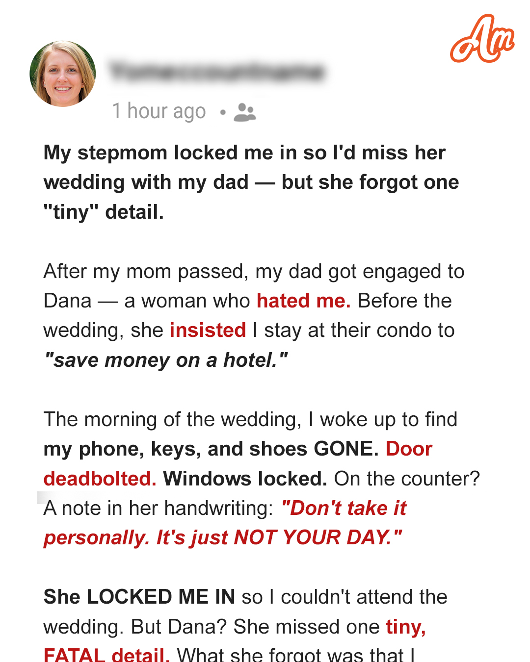 My stepmother thought she had it all figured out when she locked me inside to stop me from reaching the altar. But one small thing she overlooked turned her perfect day into a total disaster.