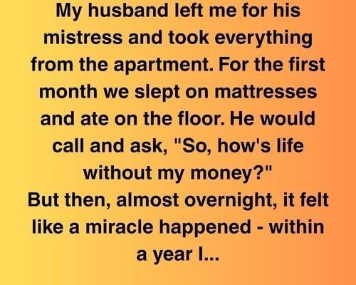 My husband left me for his mistress and took everything from the apartment. For the first month we slept on mattresses and ate on the floor. He would call and ask, “So, how’s life without my money?” But then, almost overnight, it felt like a miracle happened — within a year I learned something priceless: strength grows where tears once fell.