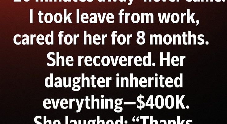 But that feeling shifted abruptly when her daughter announced the reading of the will. Everything—her savings, her home, her remaining investments—had been left to her daughter. Four hundred thousand dollars.