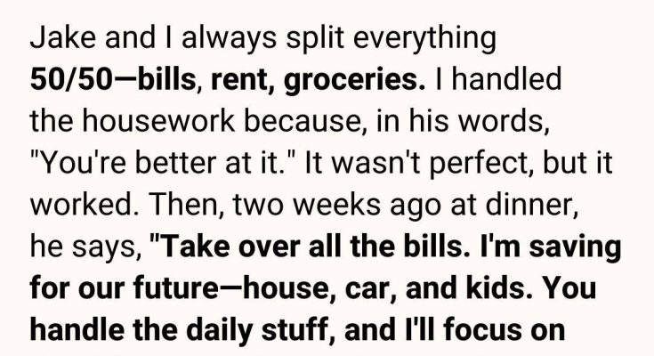It all began with a strange request over dinner—one that didn’t quite make sense at the time. But the phone call that came just days later was what truly shattered everything I believed about my husband. My husband, Jake, and I had always seen ourselves as modern and fair.