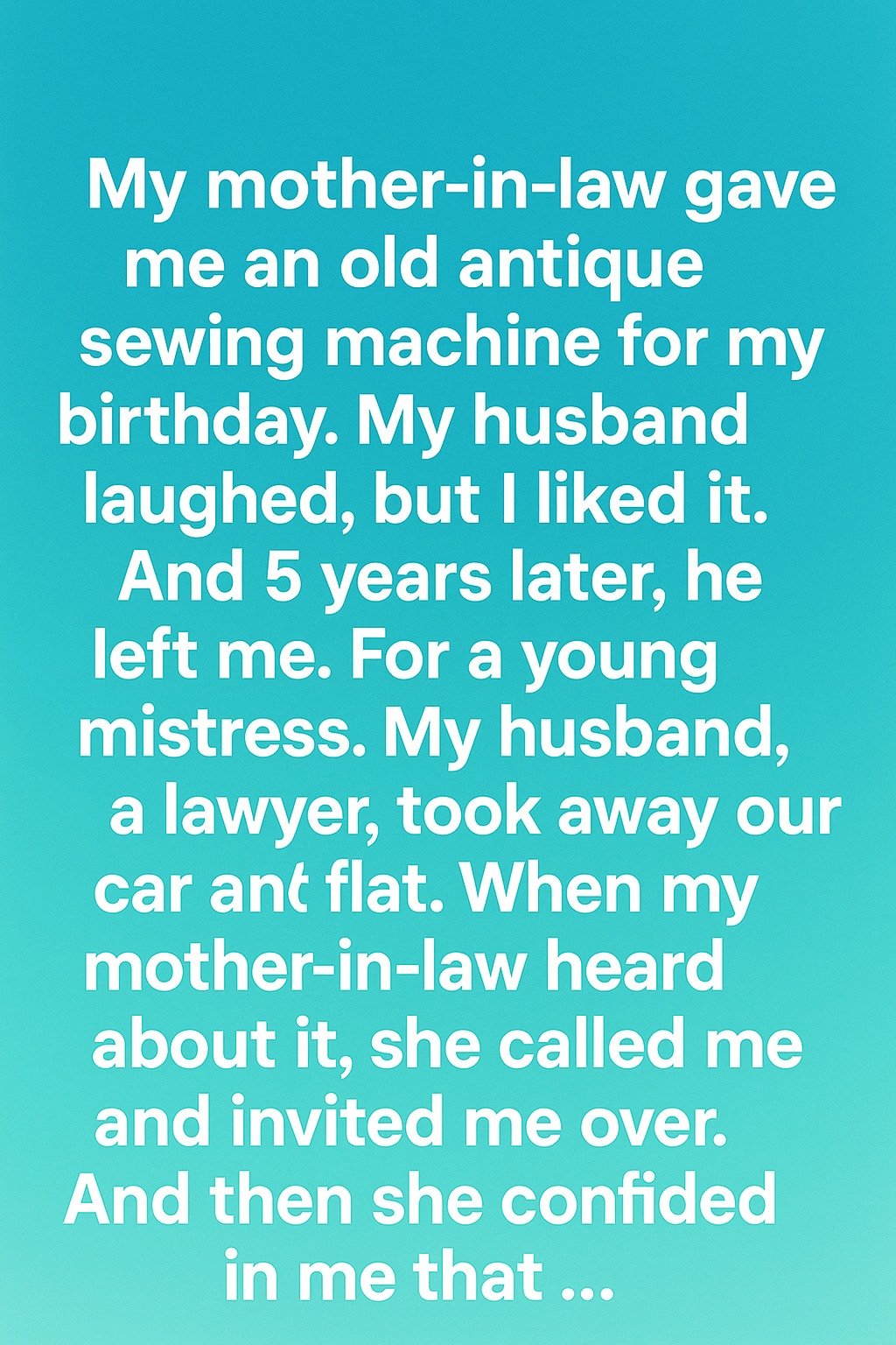 My mother-in-law gave me an old antique sewing machine for my birthday. My husband laughed, but I liked it. And 5 years later, he left me.