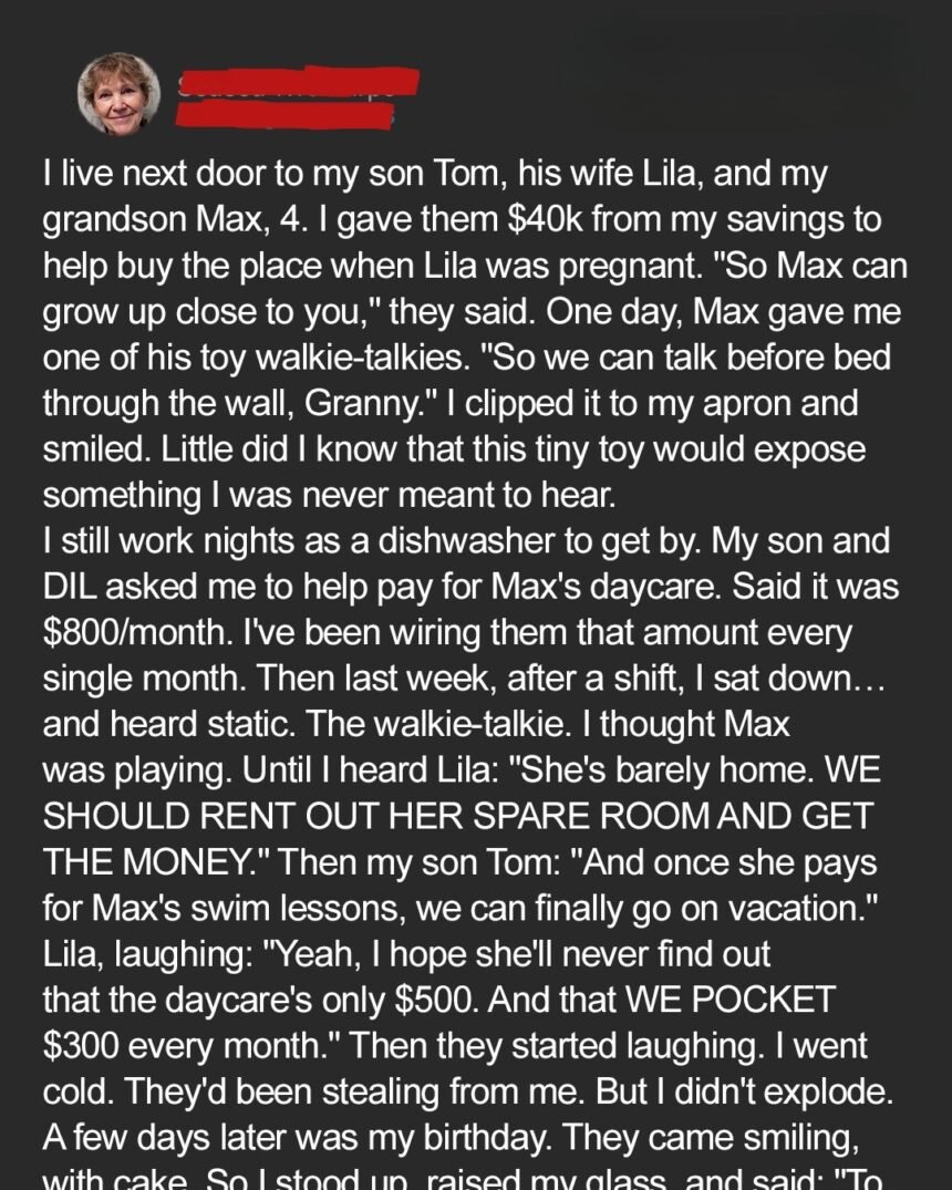 I raised my son alone and gave him everything, including my retirement savings. But a toy walkie-talkie from my grandson exposed the ugly truth about how little that meant to the man I raised. Mothers out there, if you’ve ever sacrificed for family, you need to hear this.