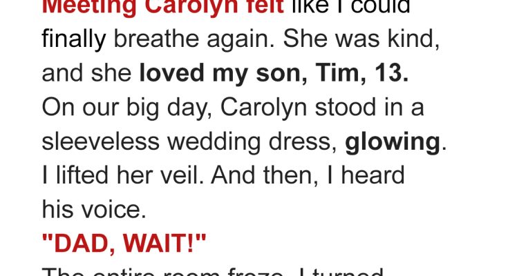 Carolyn stood before me in an elegant sleeveless dress, glowing under the lights. A delicate veil covered her face, and when I lifted it, she looked breathtaking.