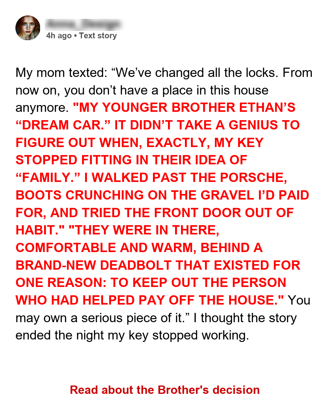 My mom texted: “We’ve changed all the locks. From now on, you don’t have a place in this house anymore. Let’s see how brave you are now, haha.” Two days later, their attorney emailed: “We have a problem. Please call back immediately.”… My mom changed the locks and told me I had no home — so I legally took half the house. She didn’t say it to my face, though. She did it by text, while I was alone in a cramped job trailer at the end of a long workday, still wearing my steel-toe boots and staring at landscape plans. My phone buzzed on the plywood table. I wiped stone dust off my hands and picked it up, expecting a supplier or a client. Instead, I saw Mom. “We’ve changed all the locks. From now on, you don’t have a place in this house anymore. Let’s see how brave you are now, haha.” That’s how my parents told their 32-year-old son he was “done”: one message, sent to the guy who’d been fixing everything for them since he could drive. I didn’t throw the phone. I just sat there, listening to the heater rattling in the corner, and looked at my hands — the same hands that had carried shingles up their roof, poured concrete into their driveway, and written check after check for their mortgage. Then I grabbed my keys.