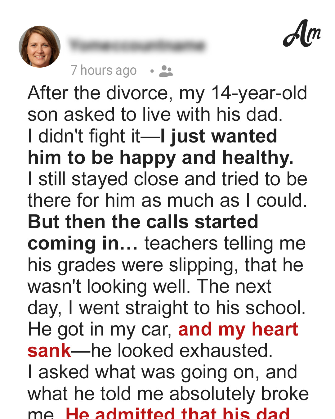 I filed for a custody change quietly. I didn’t want to tear him apart. I didn’t want to tear either of them apart. I knew that my ex-husband was struggling too.