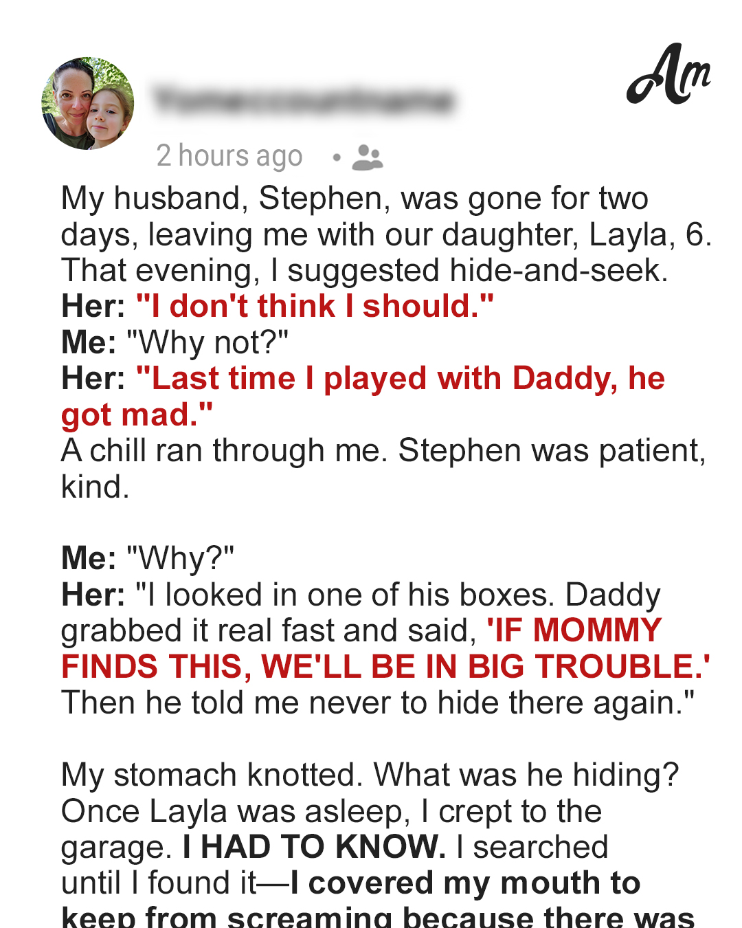 My husband was patient, kind, and the most devoted father I could have ever given my child. He’d never once raised his voice at her. I mean, even if I raised my voice at Layla, Stephen would come running to her rescue.
