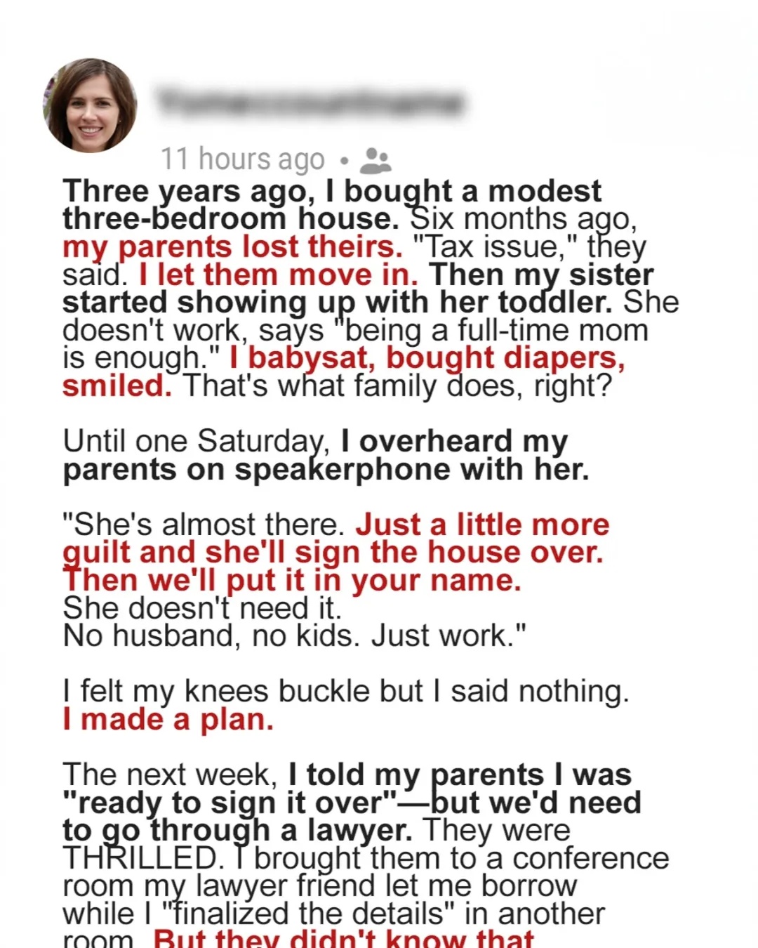 They weren’t just talking about a future. They were talking about my future, my house, my home. And they planned to use my sister, my own sister, to manipulate me into giving it to them.