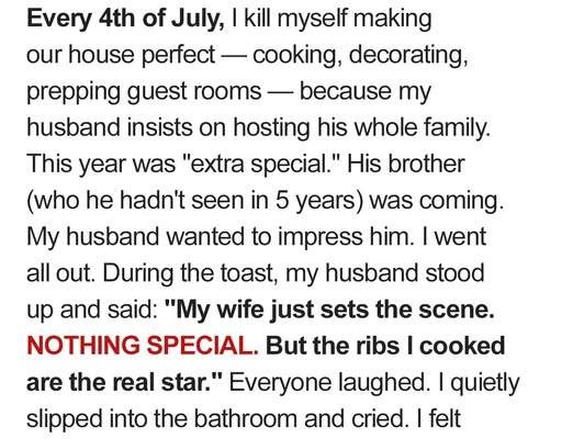 It’s funny how a single day can be both the proudest and most devastating of your life. For me, that day was our Fourth of July party. The one he took all the credit for. The one I poured every ounce of my heart and soul, and every cent of my savings, into.