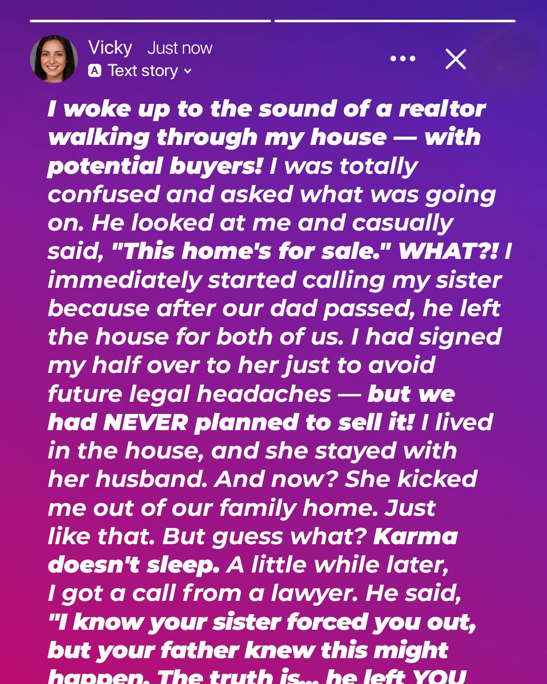 Months crawled by. I bounced between friends’ couches, the crushing weight of her betrayal a constant companion. Every memory of Dad, of our childhood in that house, was now tainted by her greed. Karma doesn’t sleep, I kept telling myself, a desperate whisper in the dark.