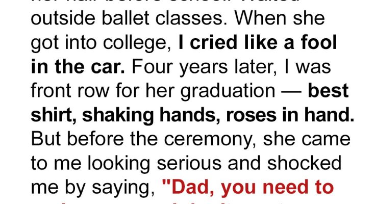 And then it was here. Graduation day. I’d practiced my smile in the mirror, bought the best shirt I owned, even polished my old shoes. Roses in hand, hands shaking, heart pounding with a pride so immense I thought it might burst. Front row. That’s where I was. Ready to watch my girl walk across that stage, ready to cheer loud enough for the whole stadium to hear.