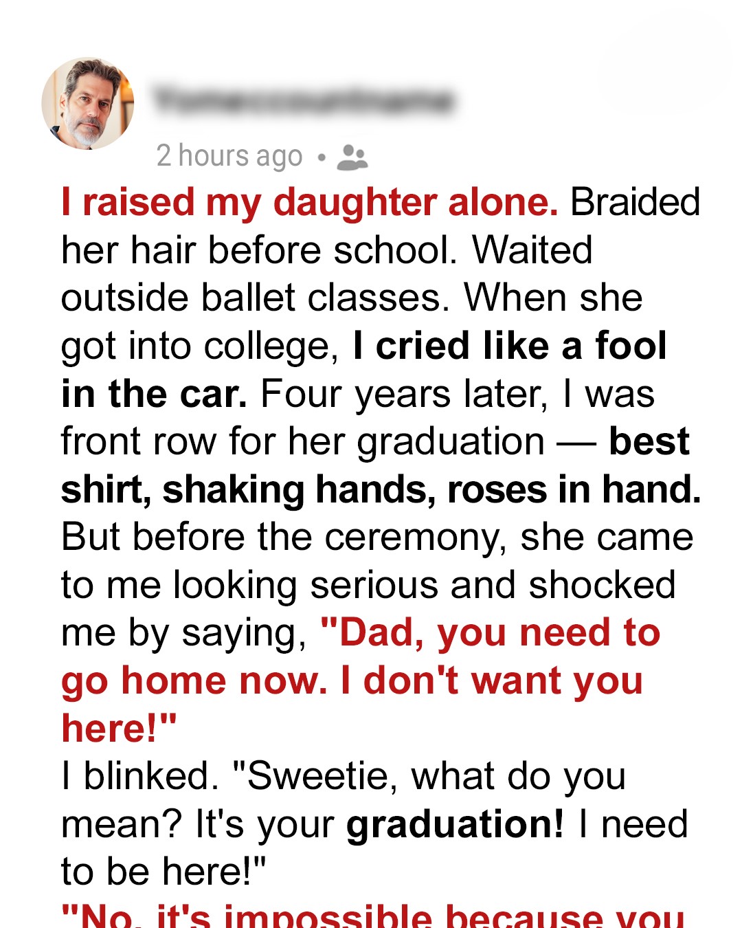 “Dad,” she said, and my world tilted. “You need to go home now. I don’t want you here.”