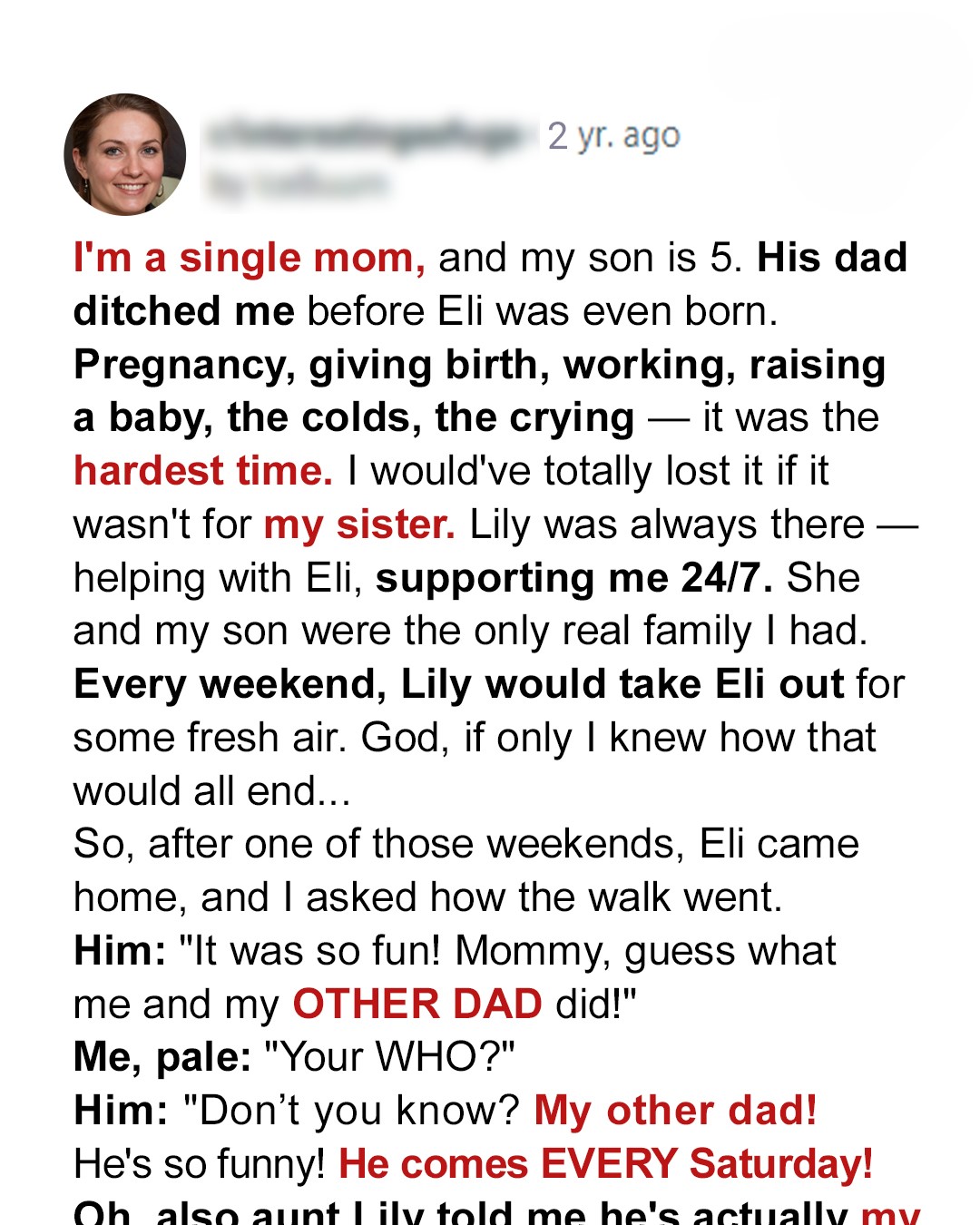 Lily was always there. She cooked, she cleaned, she held Eli when I couldn’t move. She was my lifeline, my anchor. She was supporting me 24/7. How could I ever repay her? We were a team. She and my son were the only real family I had left, the only steady ground in my shaking world. My trust in her was absolute, a given.