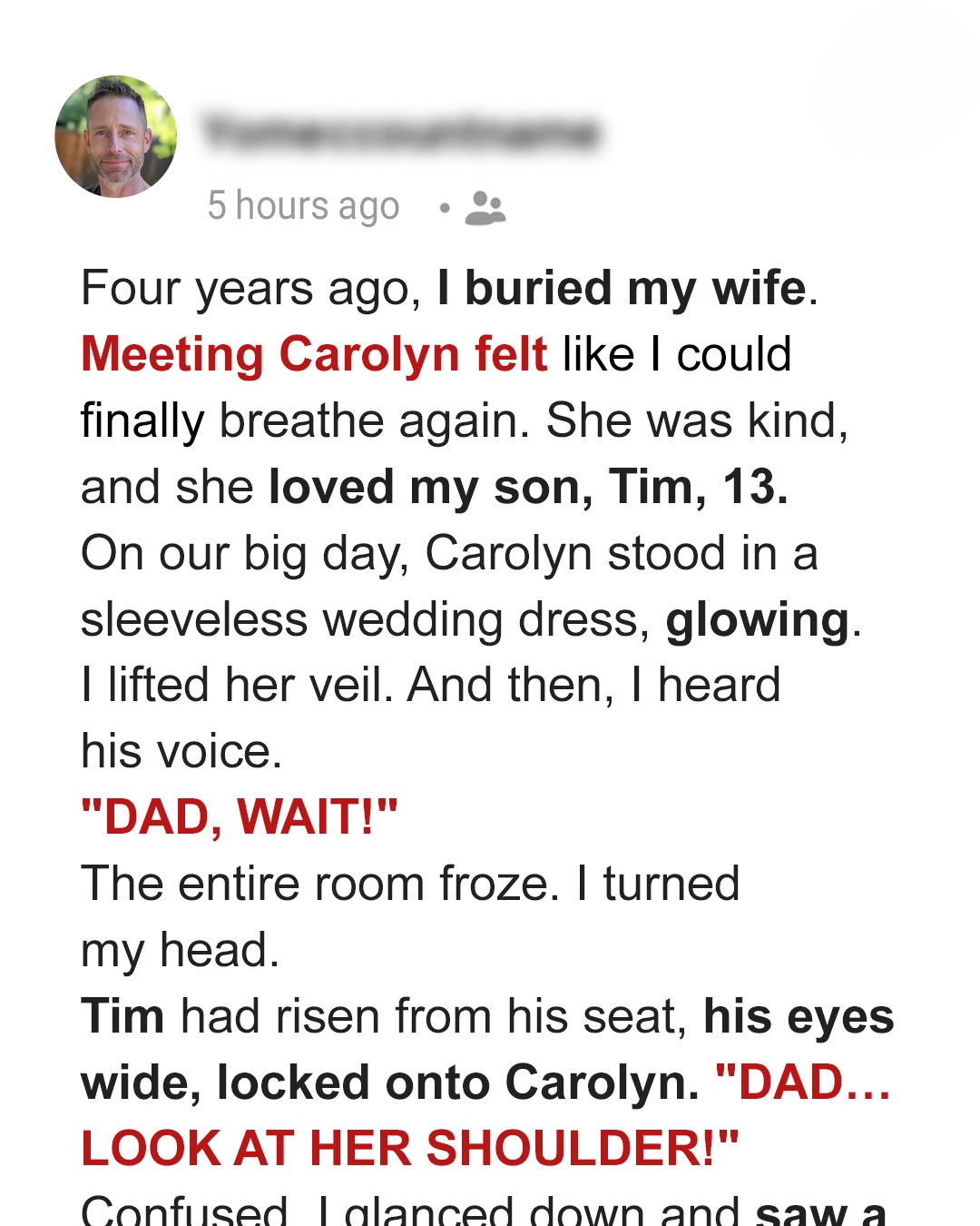 Four years ago, I buried my wife. The earth felt like it swallowed a part of me too, leaving an ache that radiated through my bones. Raising my then nine-year-old son, Tim, alone was a blur of frozen dinners and forced smiles. Every corner of our home echoed with her absence. Laughter felt like a betrayal. Hope was a foreign concept. Then Carolyn entered our lives. It wasn’t planned. It was just… a chance encounter at a local charity event. She had this quiet grace, a warmth that didn’t demand attention but drew you in. Meeting Carolyn felt like I could finally breathe again. She was kind, and she loved my son, Tim, 13.