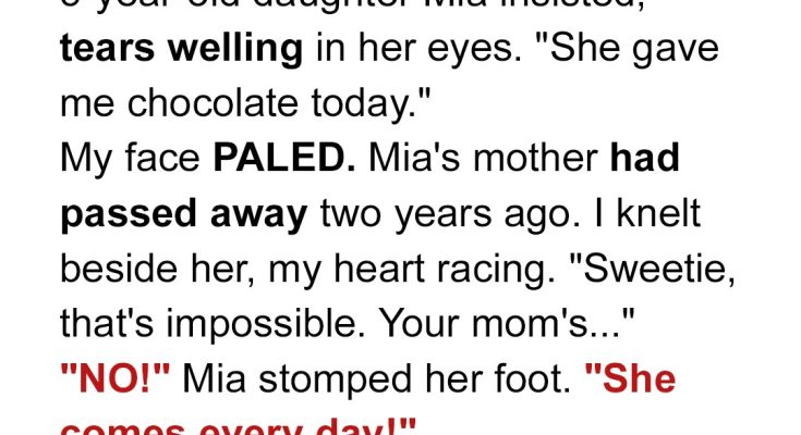 “Mommy visits me at school!” my 5-year-old daughter insisted, tears welling in her eyes. “She gave me chocolate today.” I smiled, pulling her close. My heart swelled. “That’s wonderful, sweetheart, but Mommy was at work all day.” Her lower lip trembled. “No, my Mommy. She waved to me on the playground. She had a scarf.” My smile faltered. I hadn’t been to her school. Not that day. Not with a scarf. A cold knot started to tighten in my stomach. It happened again a few days later. “Mommy told me a story during naptime!” she chirped. The teacher confirmed no one had entered the classroom during naptime. I grilled my daughter gently. “What did Mommy look like?” She described a woman with long, dark hair. My hair was short and blonde. Panic began to prickle. I tried to rationalize. Kids make things up. She’s got an active imagination. But her conviction, the little details… they were too real.