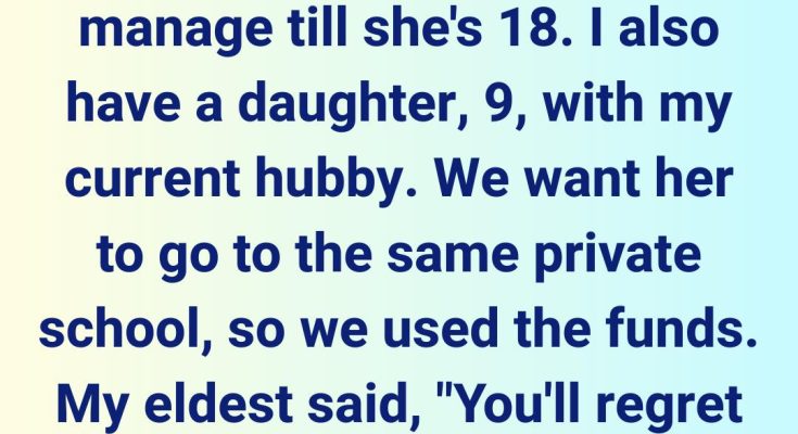 But the guilt was a constant hum beneath the surface of my life. Every time I looked at my eldest, a quiet dread settled in my chest. She never mentioned the inheritance, never seemed to notice the missing funds. She was always so private about her finances, so self-sufficient. I convinced myself she wouldn’t even check, wouldn’t care. That the money was just sitting there, unused, unneeded.