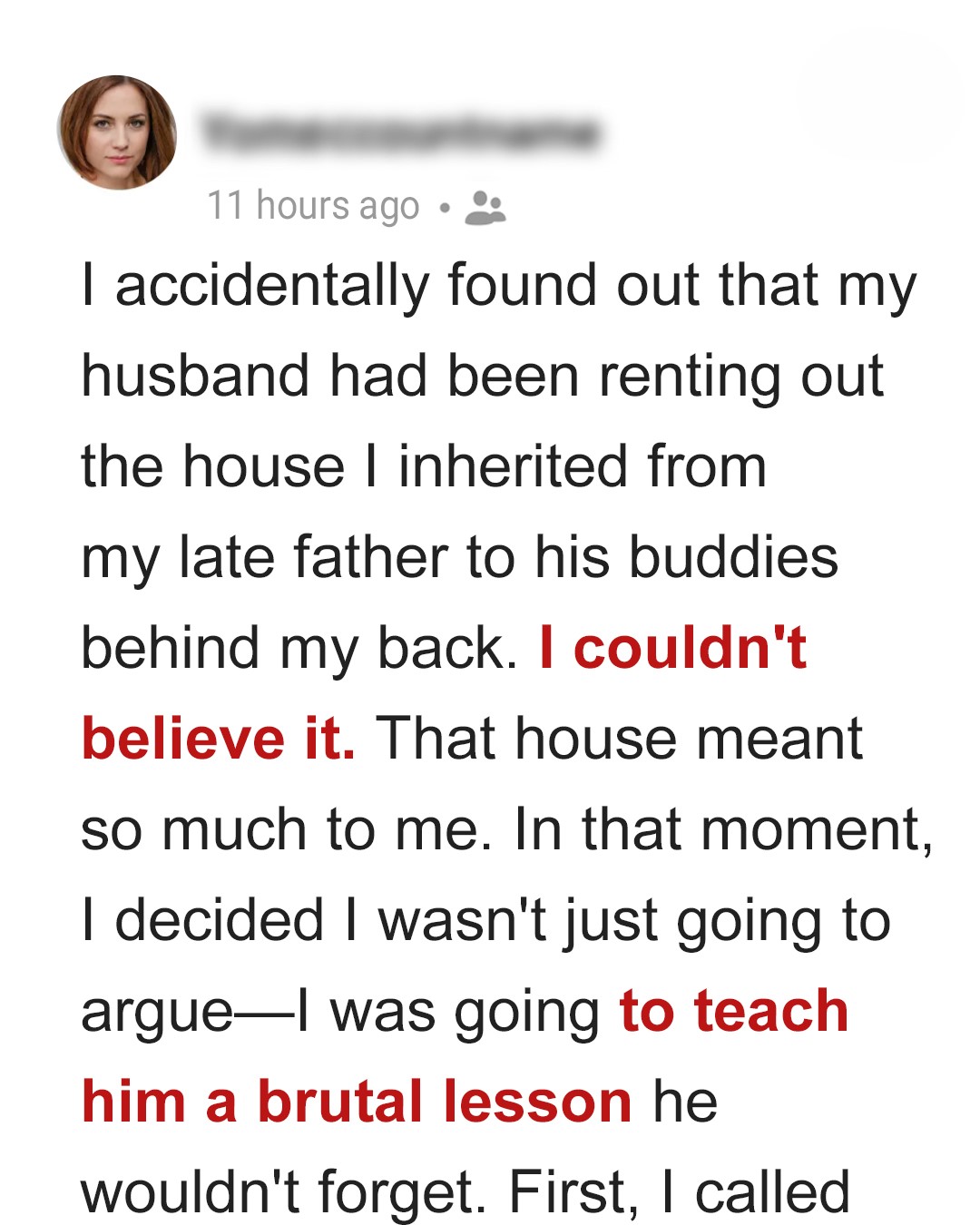 He wasn’t renting out my father’s house for “side hustle” money for his buddies. He was renting it out to pay for his own treatment, desperately trying to buy more time, and to ensure I had a future after he was gone, without burdening me with the truth.