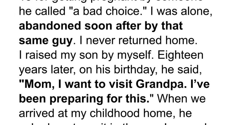 His eighteenth birthday arrived. A quiet celebration, just the two of us. He looked at me across the small, worn table, his eyes earnest. “Mom,” he said, his voice softer than usual. “I want to visit Grandpa.” My breath hitched. Grandpa. A ghost I hadn’t dared to name in almost two decades. “I’ve been preparing for this,” he added, seeing the panic flicker in my eyes. He was so calm, so determined. He had found the address himself, pieced together clues from old photos.