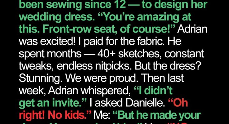 My blood ran cold. “No kids? Adrian made your dress! You promised him a front-row seat!”