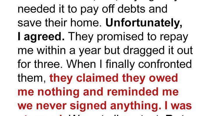 Three years. Three long years of broken promises. I was shaking the day I finally confronted them, driving to their house, my stomach in knots. I needed my money. I deserved my money. Their faces were impassive. He shifted uncomfortably. I laid out every painful detail, every missed promise. Their response? It hit me like a physical blow. “We never signed anything,” he said, her eyes fixed on the floor. “You lent it to us, sure, but there’s no record. You owe me nothing.” NOTHING. I felt the blood drain from my face. My own sister. She just let him say it. My world spun. I stood there, stunned, then turned and walked out. I didn’t speak to them again. I didn’t answer their calls. I just stopped existing in their lives, and they in mine. The wound was too deep. I didn’t just lose money; I lost my family.