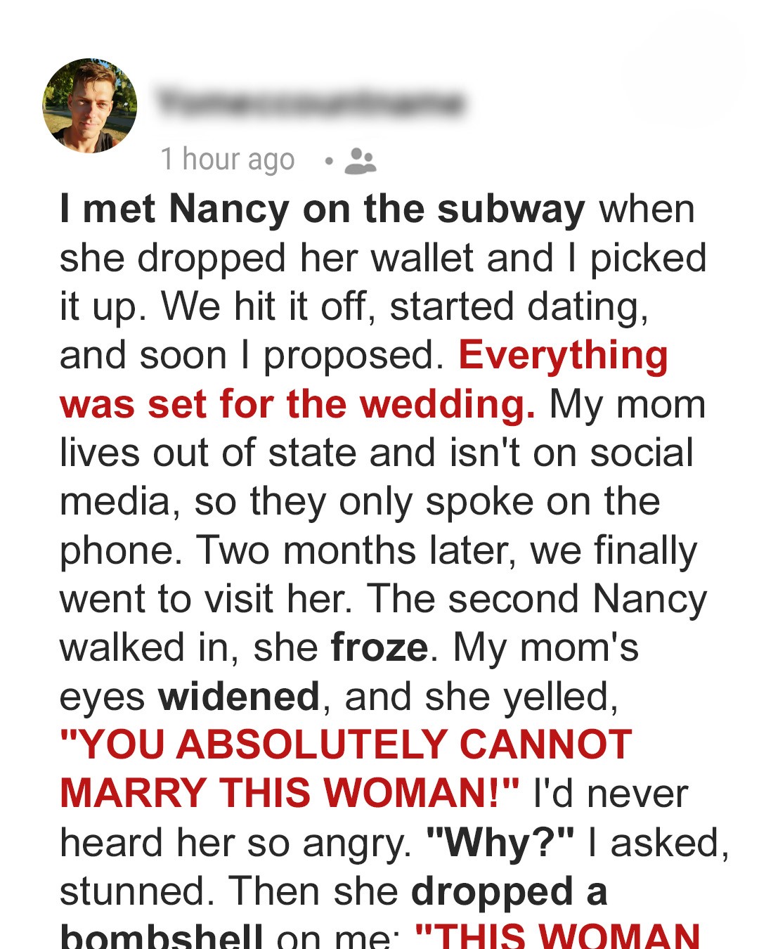 I met Nancy on the subway, a chaotic, beautiful accident. Her wallet slipped from her hand, scattering cards and cash across the grimy floor. I dove for it. Our fingers brushed, our eyes met, and in that instant, something just clicked. We laughed, we talked, we exchanged numbers. It felt like fate, a rom-com moment brought to life. We fell head over heels. Nancy was everything I’d ever wanted: smart, funny, kind, with a laugh that could chase away any dark thought. Every day with her felt like a dream. We moved in together quickly, our lives meshing effortlessly. I’d never known such peace, such pure joy. I bought the ring. On a rainy Saturday afternoon, on our favorite park bench, I asked her to marry me. She said yes, tears streaming down her face, and I felt like the luckiest man alive. The wedding planning began immediately, a whirlwind of excitement.