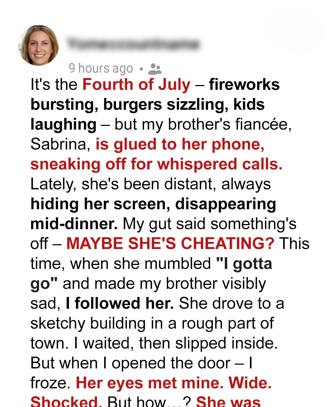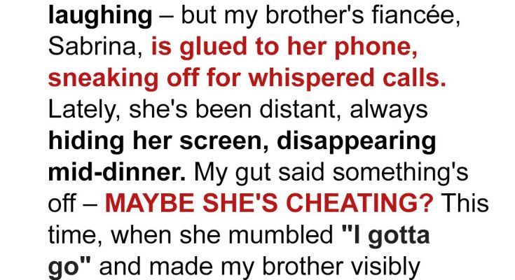 The Fourth of July. The air thick with the scent of grilling burgers and cheap gasoline from spent firecrackers. Kids’ laughter mixed with the pop-pop-boom of amateur pyrotechnics. It should have been perfect. My brother, his face lit up by the sparklers he held, looked happier than I’d seen him in years. And then I looked at her. Sabrina. His fiancée. She was beautiful, vibrant, usually the life of the party. But tonight, and for weeks now, she was a ghost. Her eyes, usually sparkling, were distant. Her phone, a constant, glowing extension of her hand, kept her tethered to a world none of us could access. My gut churned. It had been doing that a lot lately.