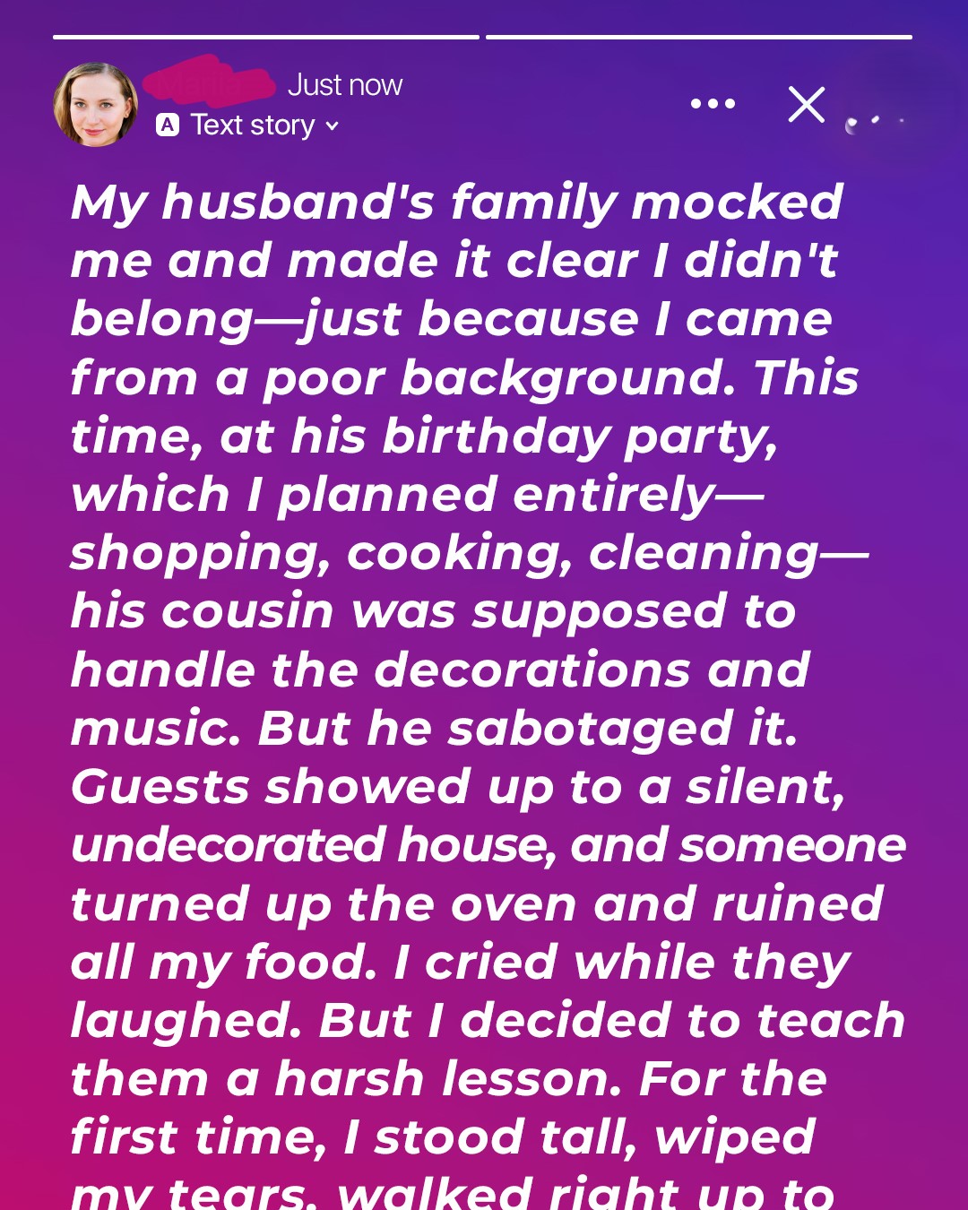 “It turns out,” I added, a tear finally escaping, but this time, it was a tear of grim satisfaction, “the ‘poor girl’ had a much richer plan.”