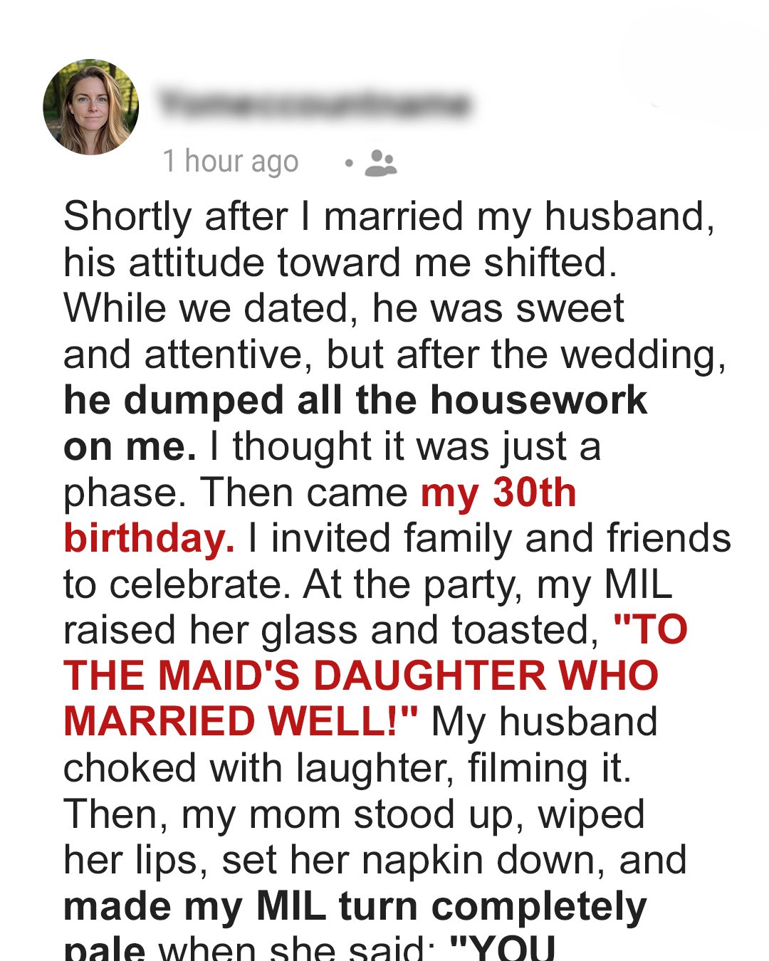 My 30th birthday was supposed to be a celebration. A chance to gather my family and friends, to feel loved and appreciated. I’d spent weeks planning, cooking, decorating, all while juggling my job and the house he contributed nothing to. The party was in full swing. Laughter, music, the clinking of glasses. I felt a momentary lightness, almost forgetting the quiet resentment that had started to fester.