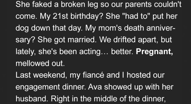 There are some people who just drain the light from a room. Ava has always been that person for me. My stepsister. My shadow. From the moment she walked into my childhood, she made it her life’s mission to steal every single spotlight. Every. Single. One. My high school graduation? A day I’d dreamt of for years. Ava faked a broken leg, demanding our parents’ full attention, leaving me with a half-empty row and a heart aching for them. My 21st birthday, a huge milestone? The day she just “had to” put her dog down, turning what should have been a celebration into a mournful vigil for a pet she barely tolerated. Then, the most unforgivable: the anniversary of my mom’s death. The one day of the year I allowed myself to just… grieve. Ava got married. On that exact day. A lavish ceremony she knew would overshadow everything.