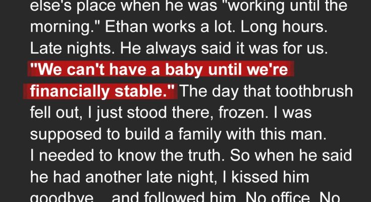 It fell out, quiet as a secret, onto the pristine white tiles of our bathroom floor. A toothbrush. Not mine. Not his usual one. This was a travel-sized, cheap plastic thing, still damp, and it had been tucked deep inside the pocket of my husband’s expensive suit jacket. My heart hammered like a trapped bird against my ribs. My first thought? HE WAS CHEATING. Brushing his teeth at someone else’s place when he was “working until the morning.” He works a lot. Long hours. Late nights. He always said it was for us. “Building our future, darling,” he’d whisper, kissing my forehead before he left, sometimes for days at a stretch.