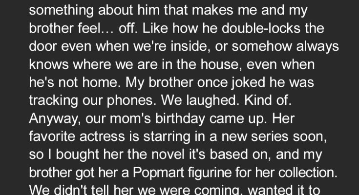 My mom’s been married to her new husband for two years now. They dated for one before that. On paper, he seems like a good guy. He’s polite, has a decent job, and has never once been rude to my brother or me. Never. That’s part of what made him so unsettling. He was too perfect. There’s always been something about him that made us feel… off. It wasn’t anything we could quite pinpoint, just a cold spot in the air whenever he was around, a smile that didn’t quite reach his eyes. Like how he’d double-lock the front door every single time, even if we were just stepping outside for a minute, even when we were all inside the house. Or how he somehow always knew where we were, even when he wasn’t home. He’d call Mom and ask if I was still in my room, or if my brother was out in the garage. My brother once joked that he was tracking our phones. We laughed. Kind of. A nervous, hollow laugh that didn’t quite reach our own eyes either.