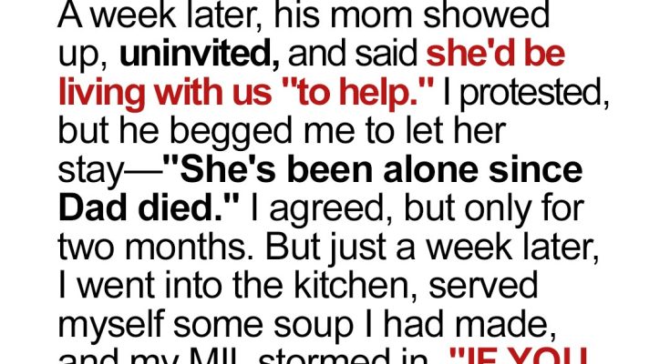 After the wedding, my husband moved into my house. A week later, his mom showed up, uninvited, and said she’d be living with us “to help.” I protested, but he begged me to let her stay—”She’s been alone since Dad died.” I agreed, but only for two months. But just a week later, I went into the kitchen, served myself some soup I had made, and my MIL stormed in. “IF YOU DON’T WORK, YOU DON’T EAT!” she barked and slapped the bowl out of my hands. It crashed to the floor, soup splattered everywhere. I was IN COMPLETE SHOCK.