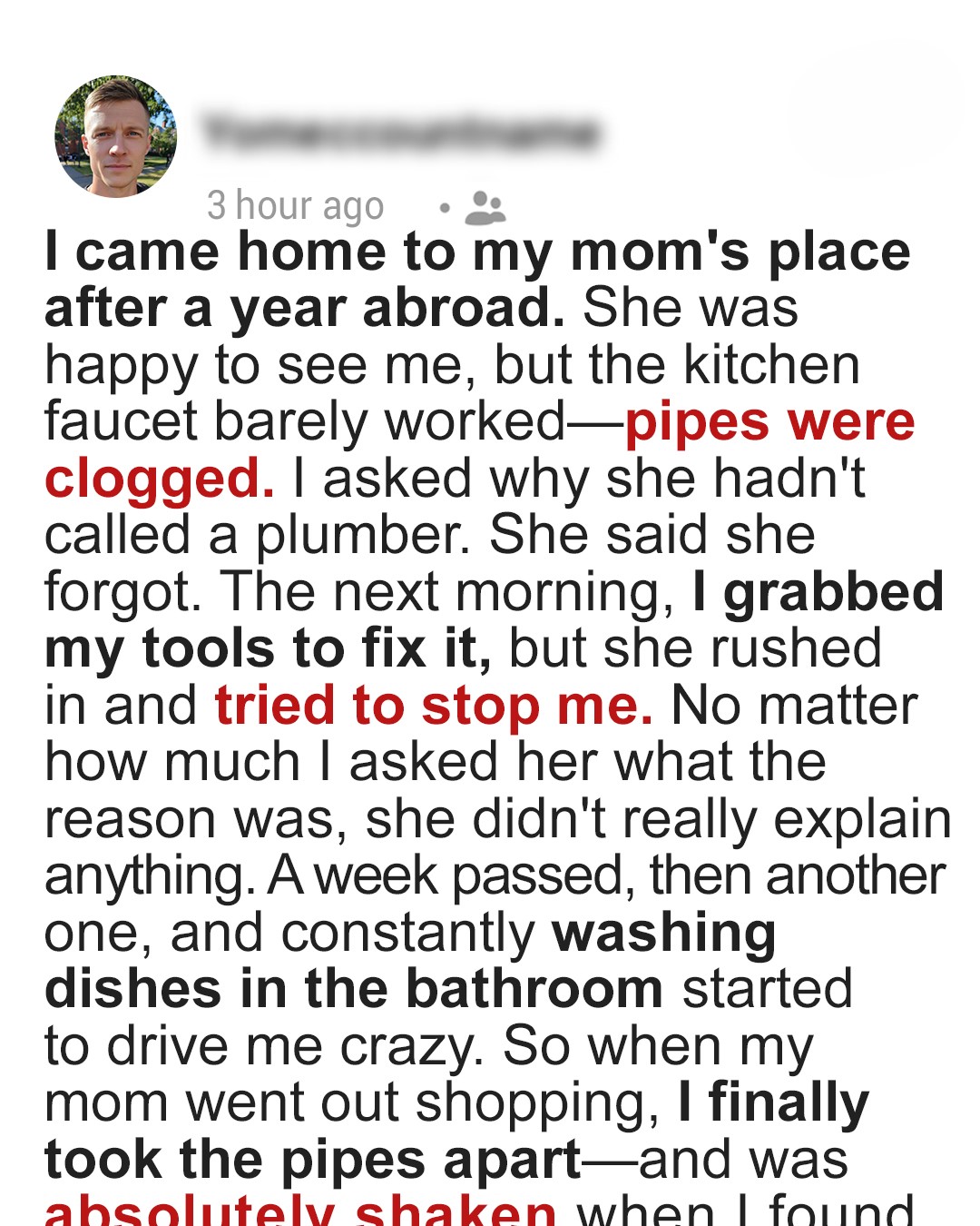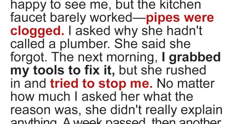 “Mom, why haven’t you called a plumber?” I asked, confused. The house wasn’t huge, but she usually kept it immaculate. A broken faucet for who knows how long just wasn’t her style.