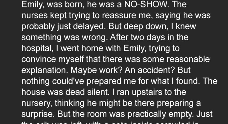 The house was dead silent when we walked in. No balloons. No “Welcome Home!” banner. No sign of him. Just silence. A cold, heavy silence that pressed in on me. I raced upstairs, Emily still nestled in her carrier, adrenaline coursing through me. The nursery. He’d be there. Setting up a surprise.