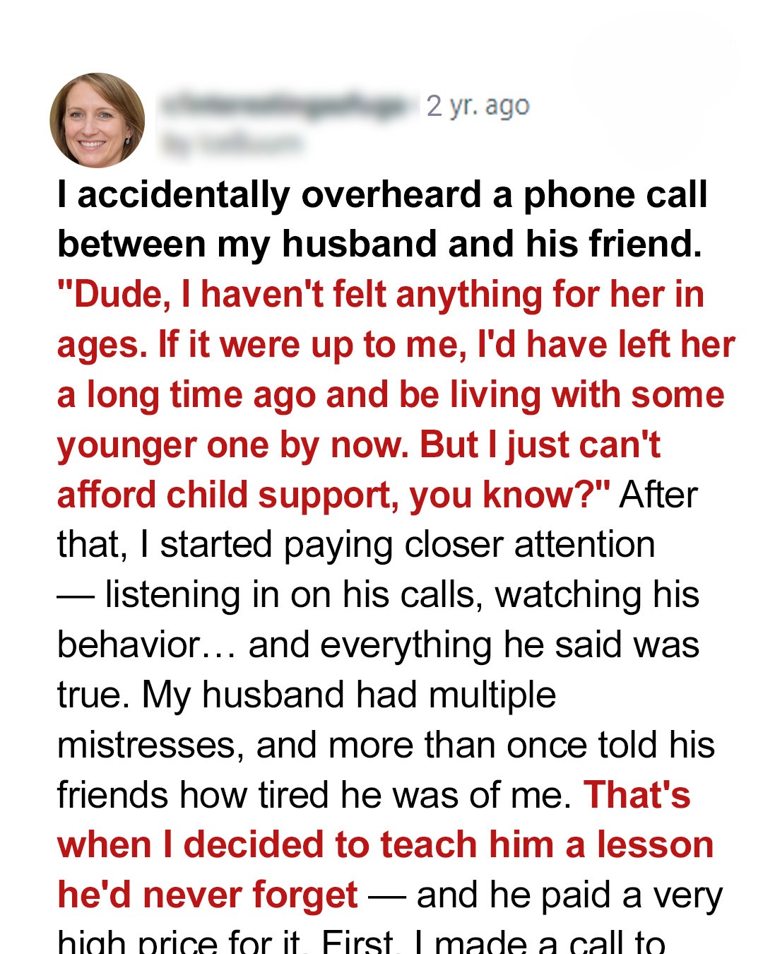 I accidentally overheard a phone call between my husband and his friend. He was in the garage, thinking I was out, or maybe he just didn’t care anymore. But I heard him. Every cruel, chilling word. “Dude, I haven’t felt anything for her in ages. If it were up to me, I’d have left her a long time ago and be living with some younger one by now. But I just can’t afford child support, you know?” My blood ran cold. Child support. For our child. The thought was a physical blow, a sudden, sharp pain deep in my chest. He said it so casually, as if I were a burden, an obstacle to his real life. He saw our precious child as a financial anchor, holding him back from some fantasy.