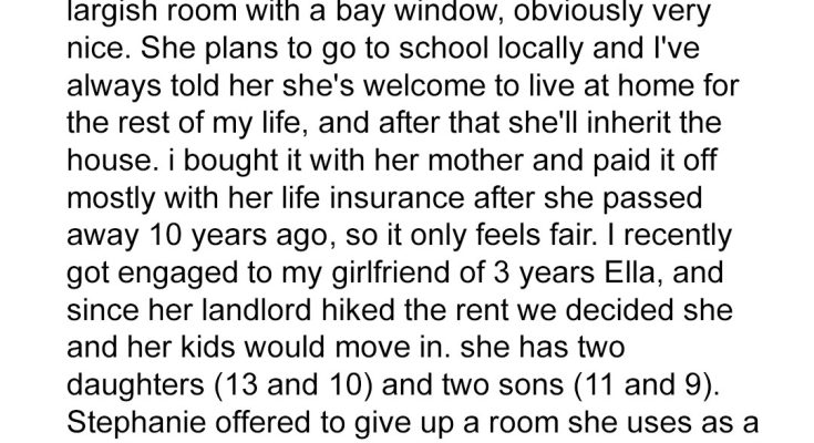 I promised her. I told her, over and over, that this house was hers. Her sanctuary. It was the last tangible thing her mother left us, paid off mostly with her life insurance after she passed away ten years ago. It felt only right. Her room, with its bay window and private bathroom, was the best in the house. A place she could thrive, a permanent home as she pursued her art and voice-over dreams locally. My daughter deserved that stability. Then my fiancée came into my life, a whirlwind of warmth and chaos with her four bright, boisterous children. After three years, we were engaged. When her landlord hiked the rent, it seemed like fate. They needed a home, and I had one. A big one. My daughter, bless her generous heart, didn’t hesitate. She offered up her studio space – the second, smaller bedroom she used for her creative projects – for my fiancée’s two girls. My son’s old room, empty since he married, would go to the boys. It all seemed so… perfect. A new family, under one roof, with everyone accommodated. I saw a future filled with laughter, blended and beautiful.