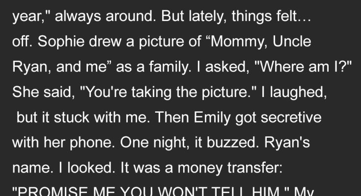 One night, I was reaching for my phone on the nightstand when hers vibrated. The screen lit up. My brother’s name. A notification from her banking app. My heart hitched. I didn’t mean to look, but my eyes were drawn to it like a magnet. The message glowed: “PROMISE ME YOU WON’T TELL HIM.”