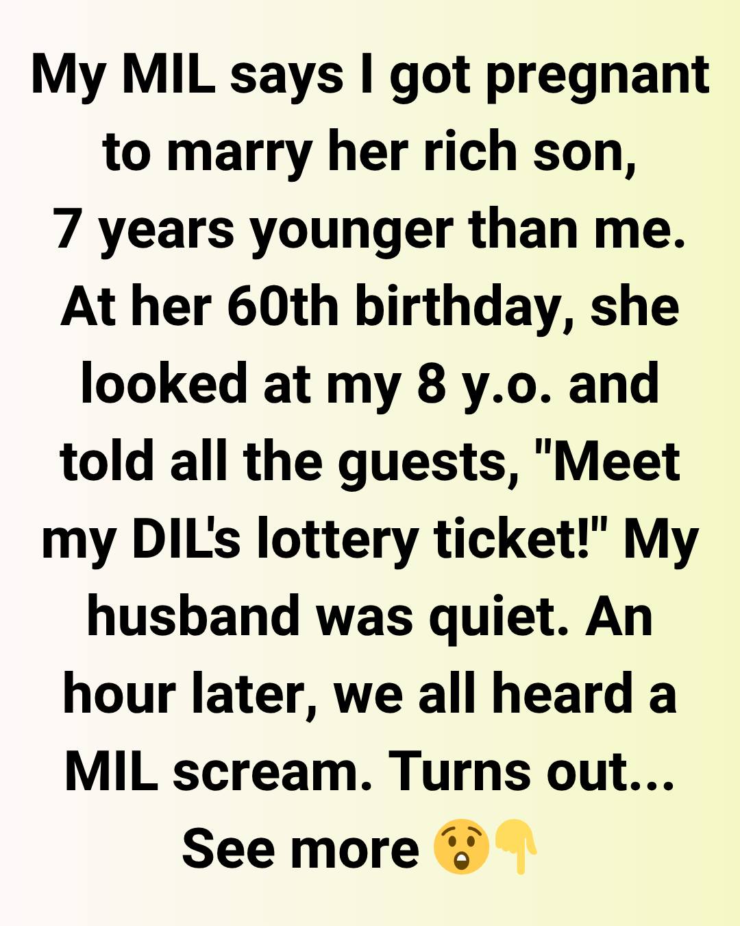It happened at his first birthday party. A grand affair, of course, hosted at her sprawling estate. Balloons, a custom cake, all the trappings of wealth. I was beaming, holding our baby, watching him gurgle at the flashing lights of a photographer. She approached, a glass of champagne in hand, her smile a brittle line. She looked at our son, then at me. “He’s your lottery ticket, isn’t he?” she purred, her voice low enough that only I could hear over the party chatter. “Finally secured your place.”