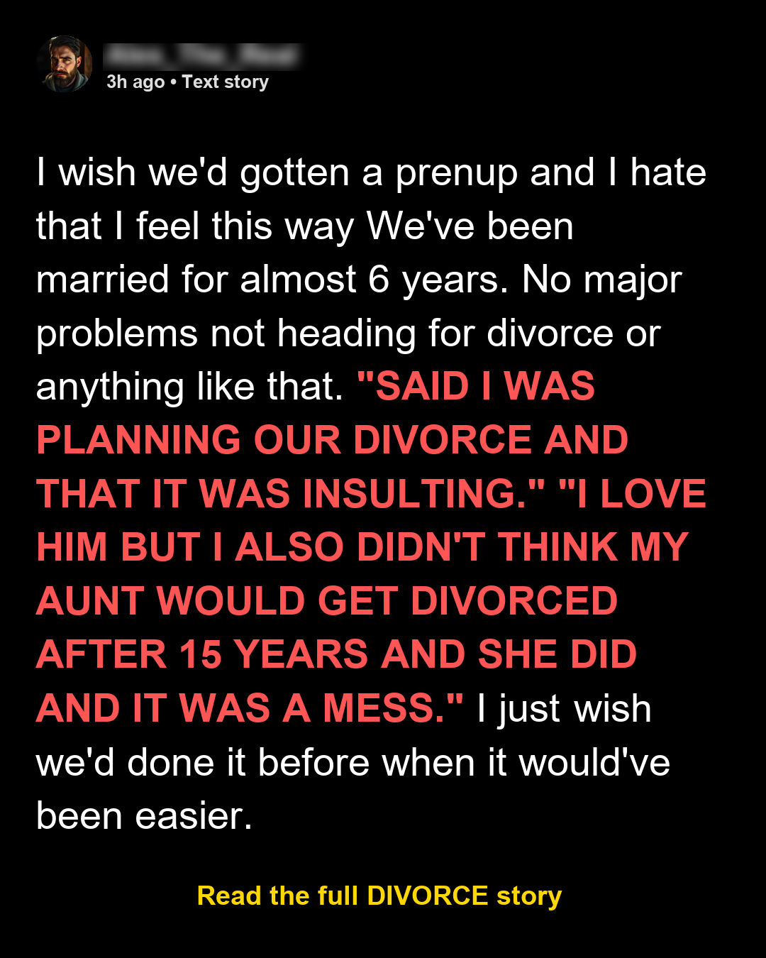That felt wrong but now I have this job I really love and I’ve been putting money into retirement and savings and there’s this voice in my head that won’t shut up. We don’t have kids yet but we talk about it. I make more than my husband, not by a huge amount but enough that it matters and I just keep thinking about how if something did happen down the line, everything gets split and I don’t even know what that looks like. I brought it up once a few months ago, like could we do a postnup now and he got really defensive. Said I was planning our divorce and that it was insulting.