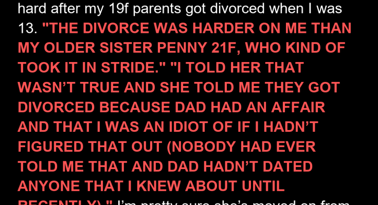 I normally spend Christmas Eve with her and she never told me what was going on. I texted her that day and asked when I could give her her gift and she said she’d reach back out after the holidays. That hurt in a way I can’t explain because she never like wouldn’t take my calls or see me before. I guessed it was probably about the stupid doll and probably should have given her space but I still texted her happy new year. Penny got super mad and drove out and yelled at me. She said that I had to stop bothering mom when I broke her heart by “picking” dad. I told her that wasn’t true and she told me they got divorced because dad had an affair and that I was an idiot of if I hadn’t figured that out (nobody had ever told me that and dad hadn’t dated anyone that I knew about until recently).