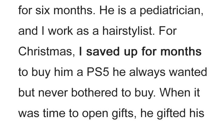 I have been engaged to my fiancé for six months. He is a pediatrician, and I work as a hairstylist. We come from different worlds, financially, but I’d always believed our hearts were perfectly aligned. For Christmas, I saved up for months to buy him a PS5 he always wanted but never bothered to buy. Every extra tip, every skipped takeout meal, every late night shift went into that secret fund. I meticulously wrapped it in shiny silver paper, adorned with a ridiculous red bow, imagining his face when he opened it. It was a labor of love, a sacrifice I made gladly for the man I adored. Christmas morning was a blur of twinkling lights and carols. His family, always so warm and welcoming, gathered in their huge living room. My stomach fluttered with a mix of excitement and nerves. He went first, presenting his gifts. To his parents, he gifted his old apartment. Not a token, not a small something, but a fully furnished, paid-off property. Their jaws dropped. Then, to his brother, he handed over the keys to his old Mercedes. A luxury car, just… handed over. My throat tightened a little. What on earth could he have for me after that? My own gift felt so small, so utterly insignificant in comparison to his grand gestures.