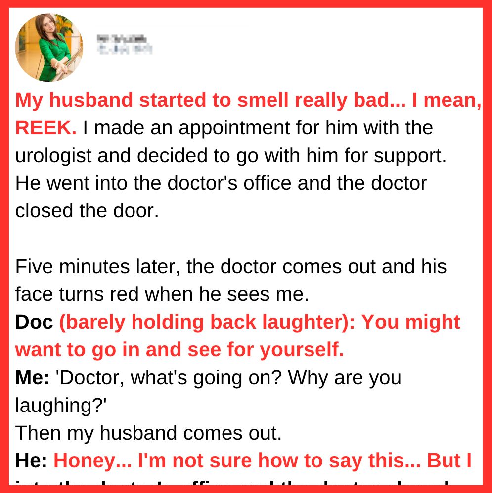 It started subtly, a faint, unfamiliar tang on his clothes, then his skin. I’d shrug it off, blame his work, or stress, or just… him. But over the last few weeks, it had grown. It wasn’t just a smell; it was an aura. A pervasive, sickeningly sweet, yet acrid stench that clung to him like a second skin. Like spoiled milk, dried urine, and something else… something indescribably off. I’d tried gentle suggestions, new soaps, longer showers, even changed our laundry detergent. Nothing worked. He just smelled… rotten. I was worried sick. My husband, the man I’d built my life with, was slowly starting to smell like a forgotten corner of a dumpster. What if it was cancer? A kidney failing? Some horrible, silent disease? I became obsessed, Googling every symptom, every possible cause for “unusual body odor, persistent.” Finally, I took matters into my own hands. I made him an appointment with a urologist, convinced it had to be something internal, something his body was desperately trying to tell us. He resisted at first, embarrassed, but my fear won him over.