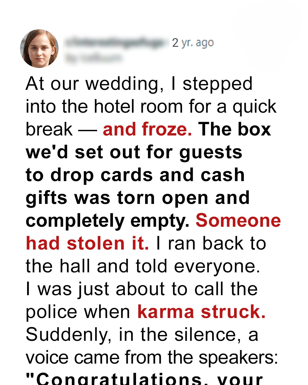 My stomach dropped, a cold, hard knot of panic. NO. This couldn’t be happening. Not today. My hands flew to my mouth, muffling a choked sob. I peered into the void where hundreds, maybe thousands, of dollars had been, along with the heartfelt cards from everyone we loved. My world tilted. Who would do this? On our wedding day? The violation, the sheer audacity of it, burned a hot trail up my throat.