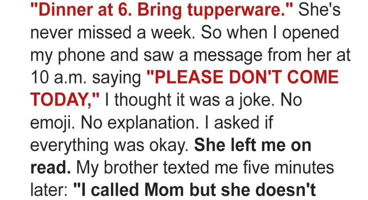 Every Sunday, without fail, my mom sends a message in the family group chat: “Dinner at 6. Bring tupperware.” It’s a tradition as old as time, a comforting ritual that brings us all together. She’s never missed a week, not for illness, not for travel, not for anything. So when I opened my phone that fateful Sunday morning and saw a message from her at 10 a.m. saying “PLEASE DON’T COME TODAY,” I initially thought it was a joke, a quirky attempt at humor. But something felt off. There was no emoji, no explanation, just those stark, chilling words. I asked if everything was okay, my fingers flying across the keyboard in a flurry of worry. The dreaded ‘read’ receipt appeared, but no response followed, leaving me hanging in a state of anxious uncertainty. Five minutes later, my brother texted me, his message mirroring my own growing concern: “I called Mom, but she doesn’t pick up. Have you talked to her?” I hadn’t. A wave of unease washed over me, a cold dread creeping into my bones. The fact that she wasn’t answering either of us was highly unusual, a glaring deviation from her normal, dependable behavior. We exchanged a series of frantic texts, our anxieties escalating with each passing moment. The thought that something might be terribly wrong began to take root in our minds, planting seeds of fear and fueling our growing panic.